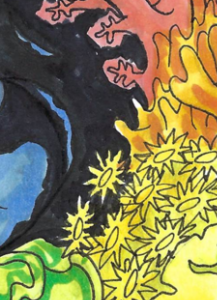 I am a mostly traditional artist working primarily in alcohol markers. I draw a lot of creatures and characters in bright, saturated colors.
